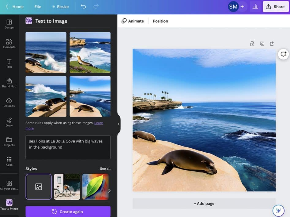 Canva also integrates AI to offer features like design suggestions, automated layout enhancements and creative tools that streamline the design process for users. In particular, its text-to-image feature offers a way to create completely AI-generated images.