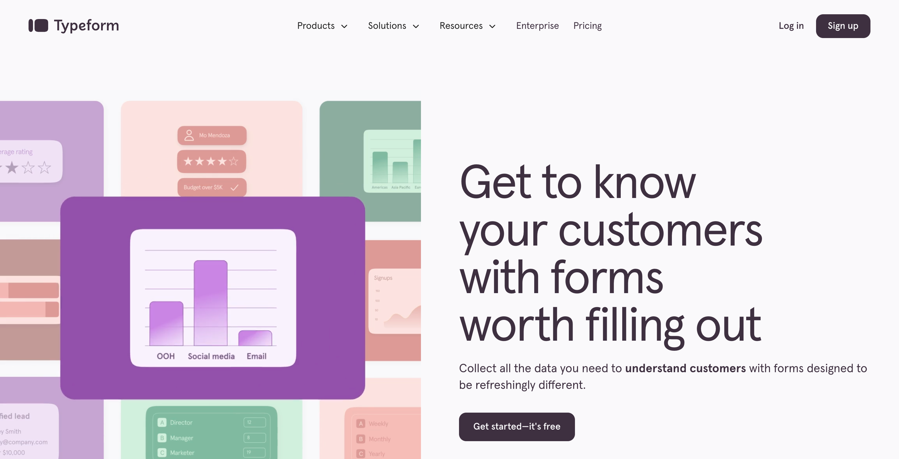 Typeform is a SaaS company on a mission to make form-building beautiful and engaging. Its website is a great example of how to create a site that’s just as stunning as the forms they create. The homepage is a visual feast for the eyes, with a sleek and modern video that breaks down the product’s features.